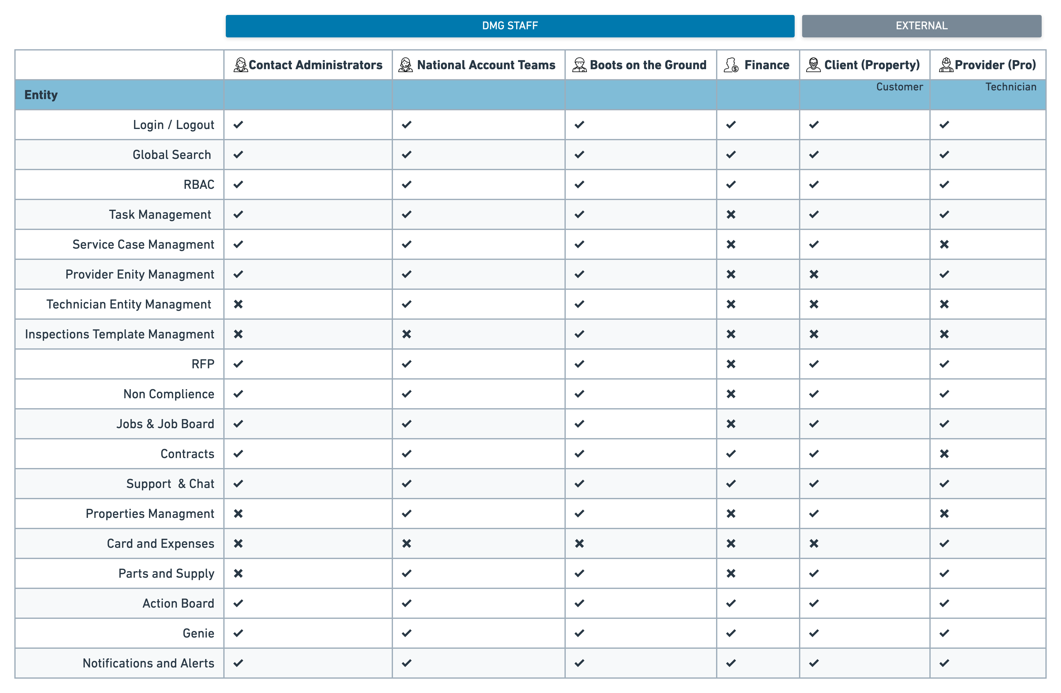 Identified internal and external users types and key needs.